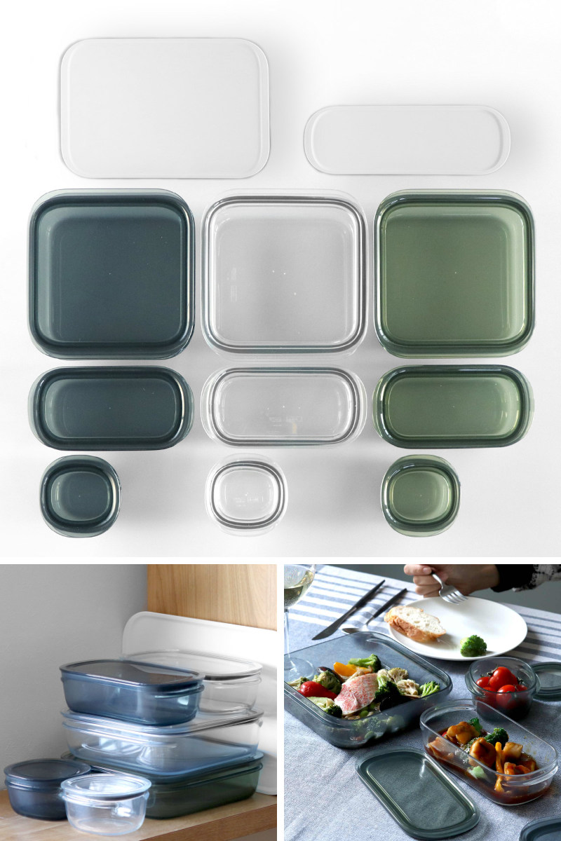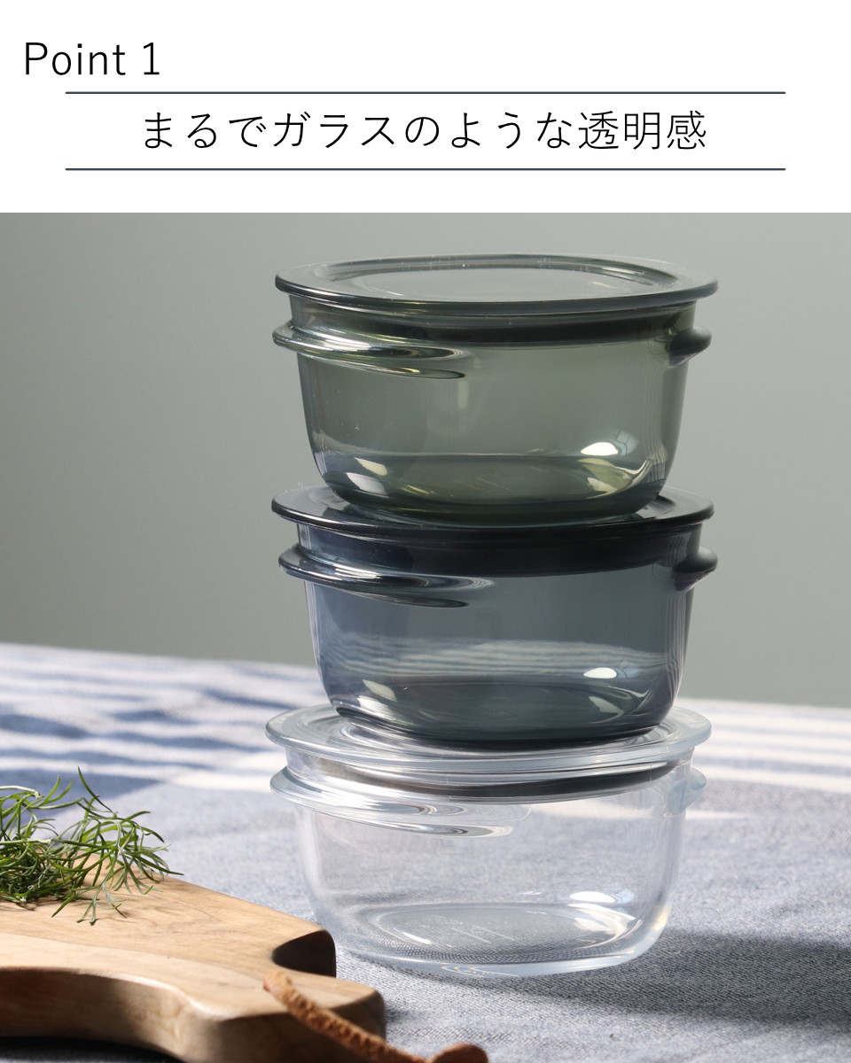ガラスの器のような見た目は食器と一緒に食卓に並べても違和感がありません。保存していた食品を容器に入れたまま食卓に出せるので、準備と後片付けがラクになります。