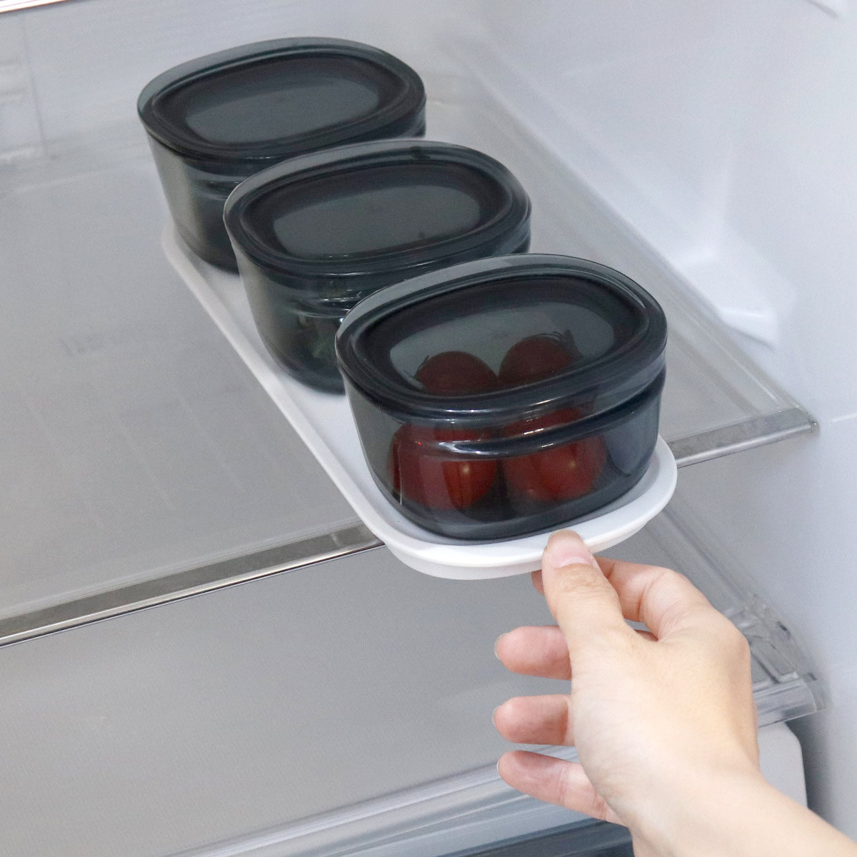 保存容器がピッタリ収まるシリーズ専用トレー(別売)。保存容器をのせておけば、冷蔵庫からまとめて取り出したり、食卓に並べたりが手軽に。より冷蔵庫の整頓がしやすくなります。