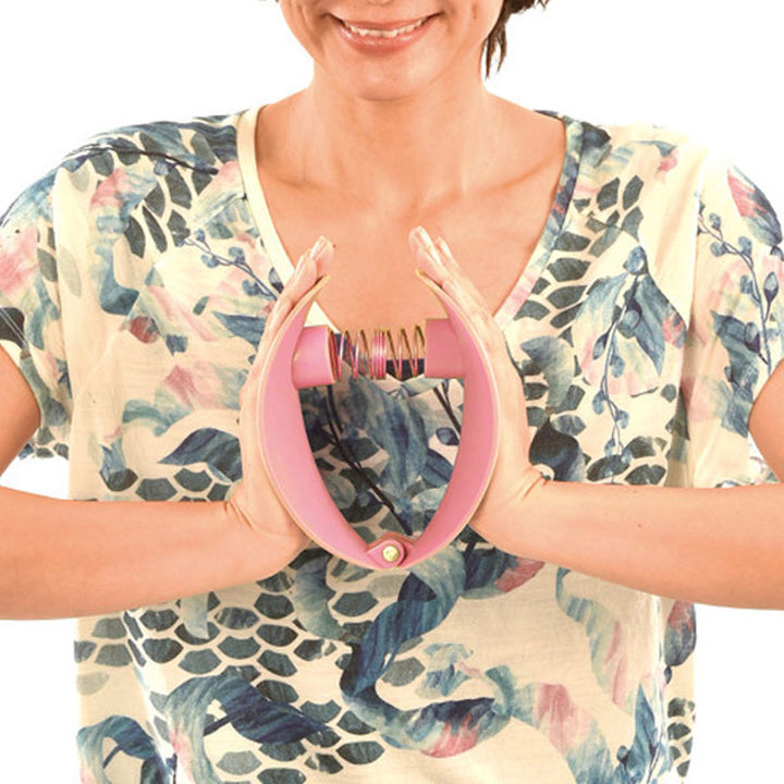 ●胸の前で手のひらで挟み、閉じて、開いてを繰り返すと胸筋が鍛えられます。