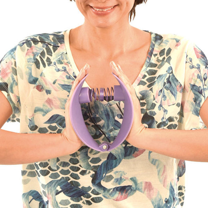 ●胸の前で手のひらで挟み、閉じて、開いてを繰り返すと胸筋が鍛えられます。