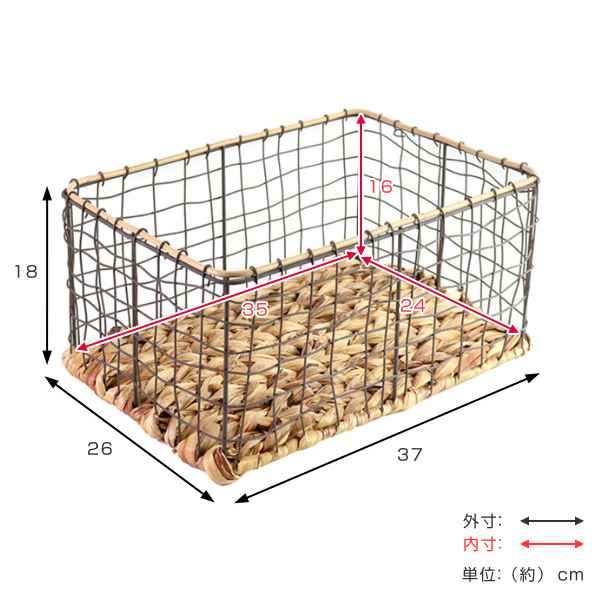 ワイヤーバスケット 籐のカゴ 幅37×奥行26×高さ18cm