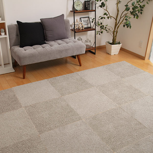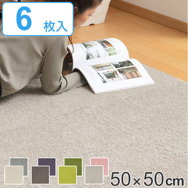 50cm×50cmサイズのタイル形状なのでポンポンと置くだけで設置も簡単。1枚もののラグとは違い、部分的に取り替え可能で色柄を自由に組み合わせて楽しんでいただけます。