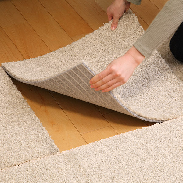 滑り止め付き 裏面には滑り止めが付いているので接着材剤を使わずに敷き込むことができます。滑りにくく、めくれる心配もありません。 |