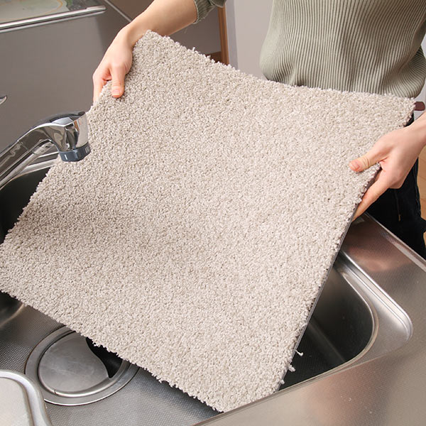 タイル形状なので汚れた部分だけを取り替えることができます。お子さまの食べこぼしやペットの粗相などで汚れても1枚単位で手洗いができ、いつも清潔な状態を保てます。サイズも50cmと扱いやすいのでキッチンの流し台や洗面所で洗うことができます。