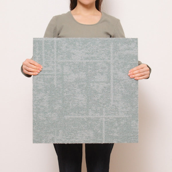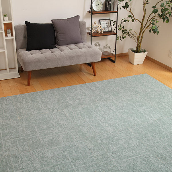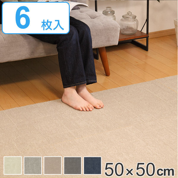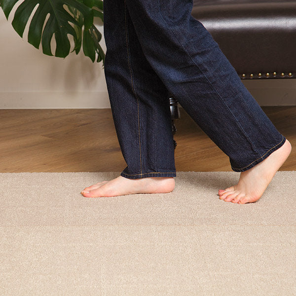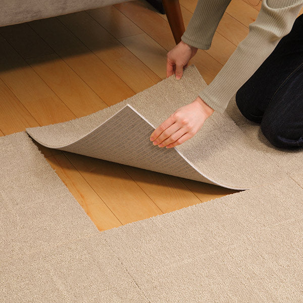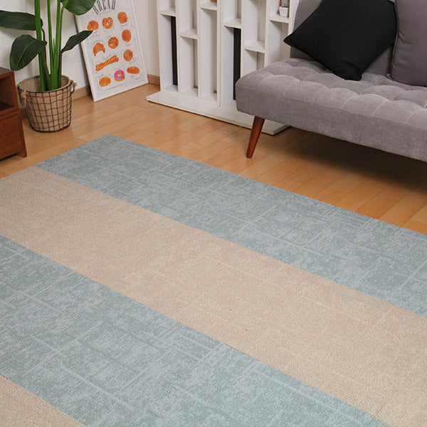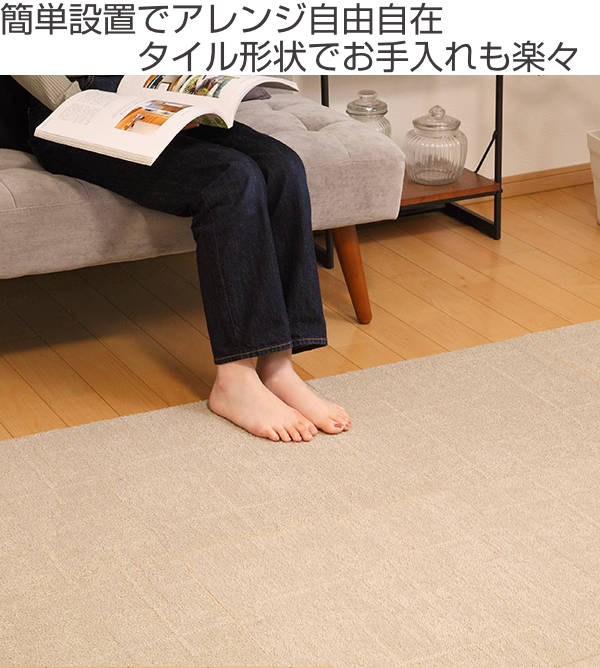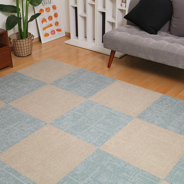 50cm×50cmサイズのタイル形状なのでポンポンと置くだけで設置も簡単。1枚もののラグとは違い、部分的に取り替え可能で色柄を自由に組み合わせて楽しんでいただけます。縦横交互に並べる市松貼りも素敵です。