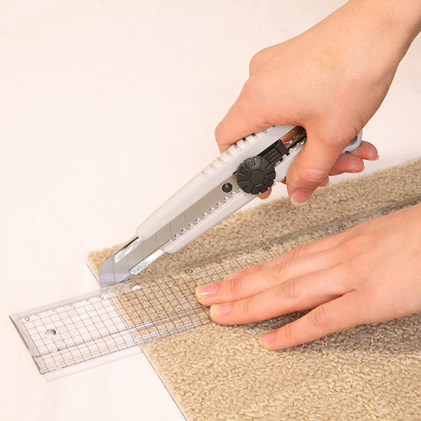 気軽に敷き込み カッターで簡単に切れるのでお部屋の形に合わせて敷き込むことができます。柱のでっぱりや備え付けの家具にも対応できるのでオーダーメイド感覚で自由な形に設置できます。 |