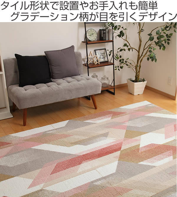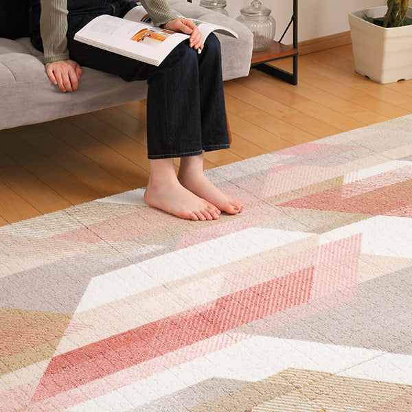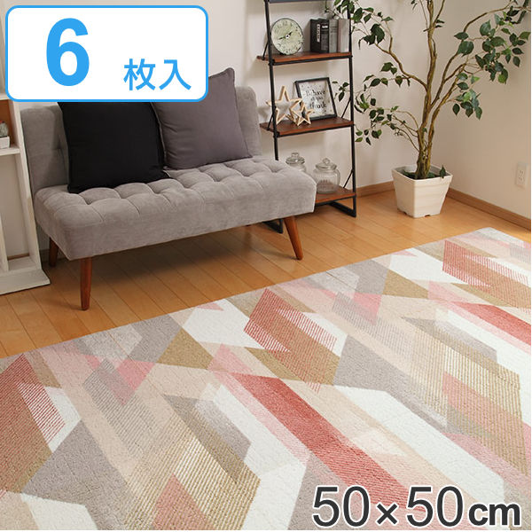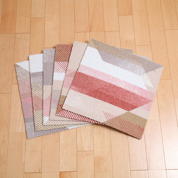 50cm×50cmサイズのタイル形状なのでポンポンと置くだけで設置も簡単。1枚もののラグとは違い、部分的に取り替え可能で色柄を自由に組み合わせて楽しんでいただけます。