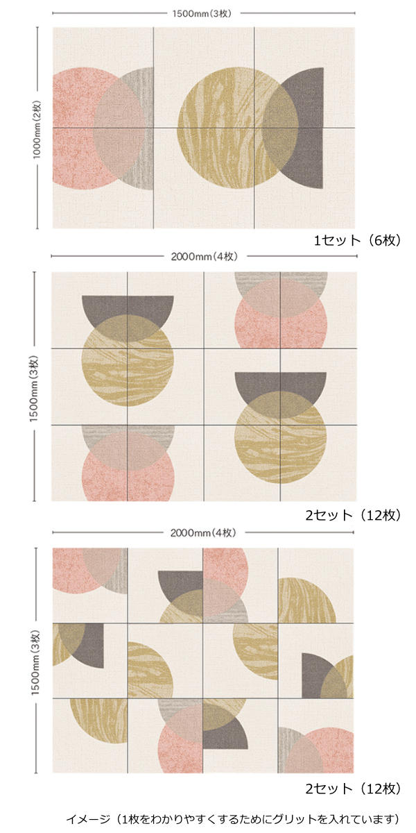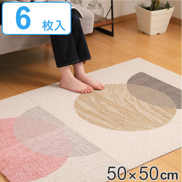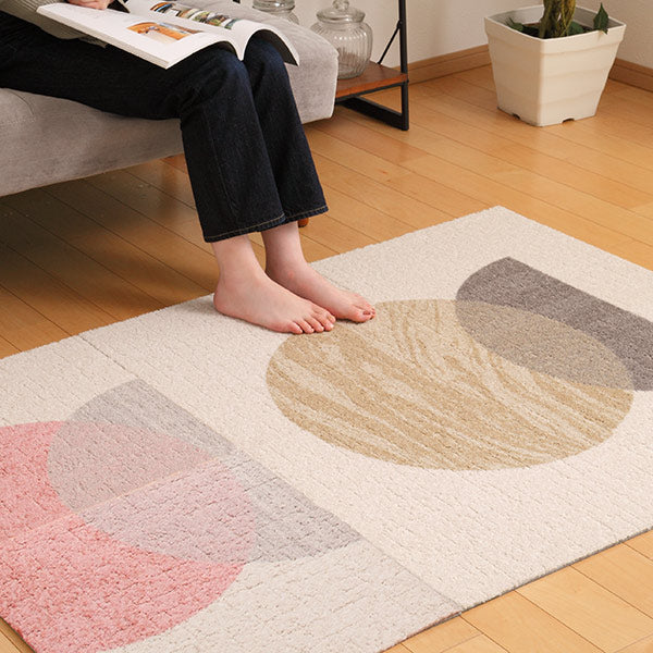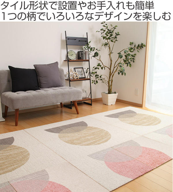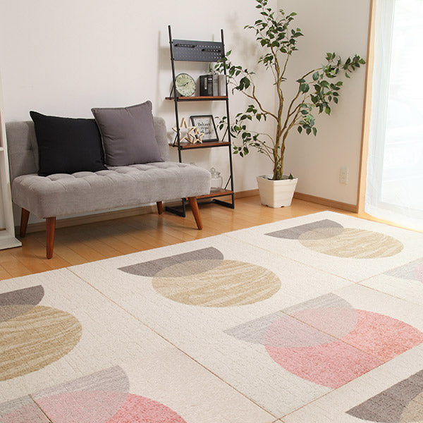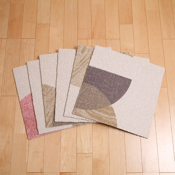 50cm×50cmサイズのタイル形状なのでポンポンと置くだけで設置も簡単。1枚もののラグとは違い、部分的に取り替え可能で色柄を自由に組み合わせて楽しんでいただけます。