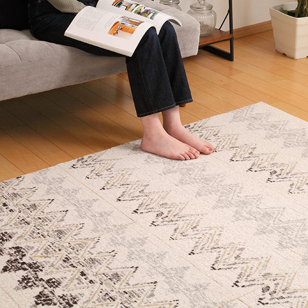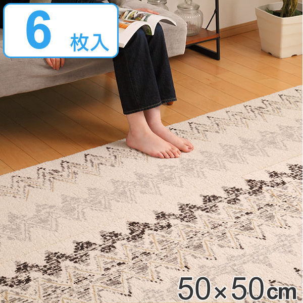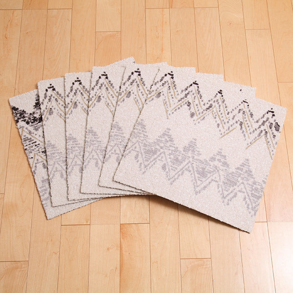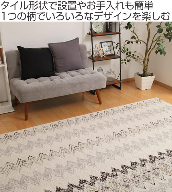 50cm×50cmサイズのタイル形状なのでポンポンと置くだけで設置も簡単。1枚もののラグとは違い、部分的に取り替え可能で色柄を自由に組み合わせて楽しんでいただけます。