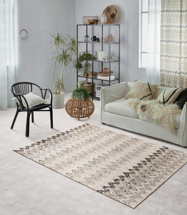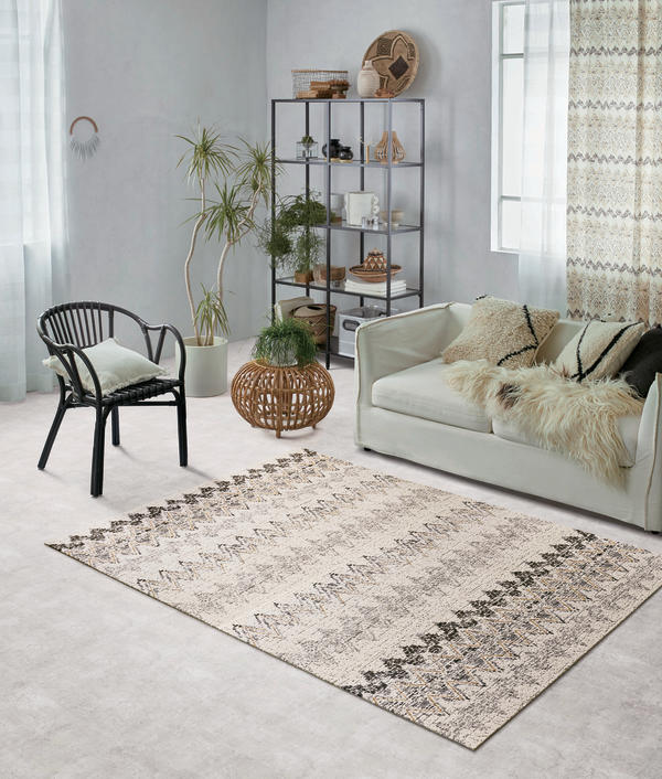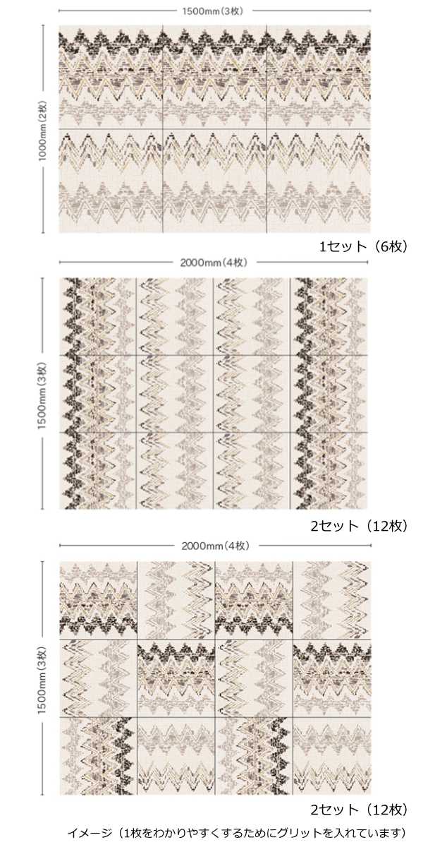 気分によって、使う場所によって、並べ方を変えればガラリと印象を変えることができます。民族的なパターンの「プリミティブ」は、今っぽいナチュラルスタイルにピッタリのデザインです。