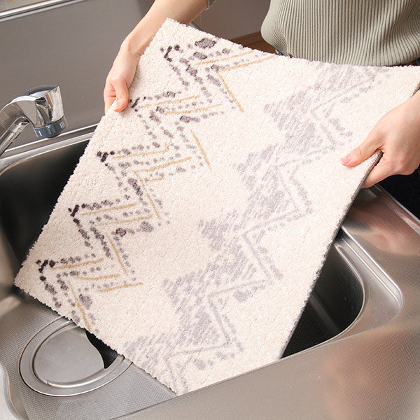タイル形状なので汚れた部分だけを取り替えることができます。お子さまの食べこぼしやペットの粗相などで汚れても1枚単位で手洗いができ、いつも清潔な状態を保てます。サイズも50cmと扱いやすいのでキッチンの流し台や洗面所で洗うことができます。
