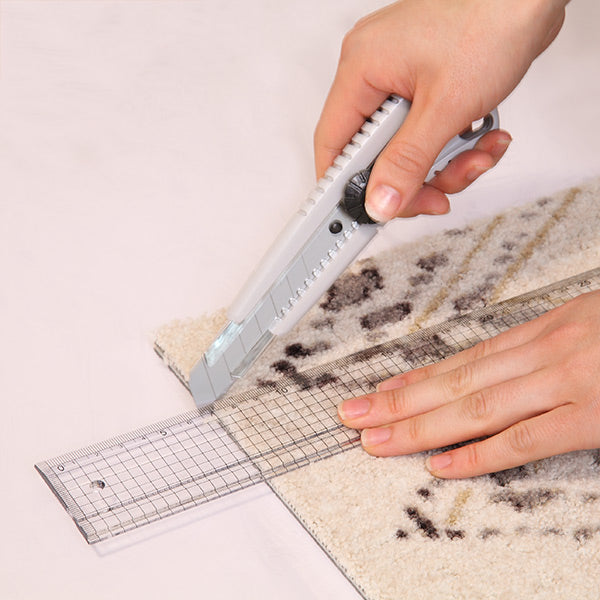 気軽に敷き込み カッターで簡単に切れるのでお部屋の形に合わせて敷き込むことができます。柱のでっぱりや備え付けの家具にも対応できるのでオーダーメイド感覚で自由な形に設置できます。 |