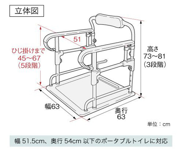 | 備考 | ※幅51.5×奥行54(cm)以下のポータブルトイレ対応 ※最大使用者体重:100kg |