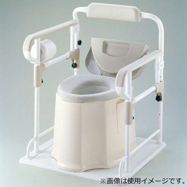 お使いのポータブルトイレに組み合わせてご使用いただくと、立ち座りの補助や姿勢の安定につながります。