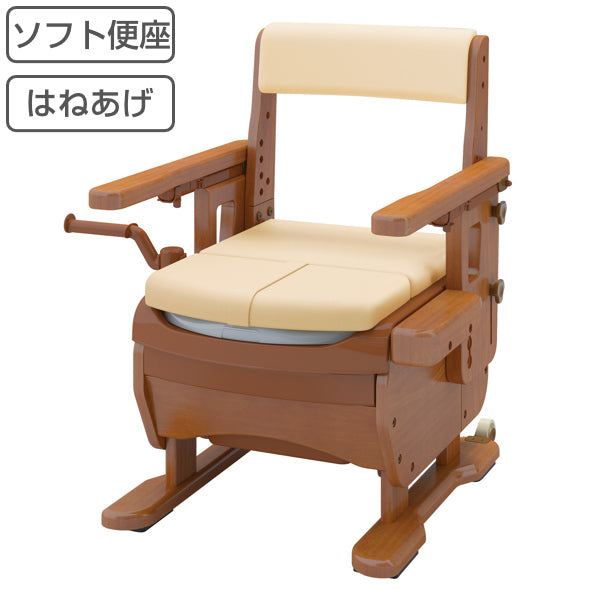 ポータブルトイレ ソフト便座 家具調セレクトR はねあげ ひじ掛けタイプ 介護用 日本製