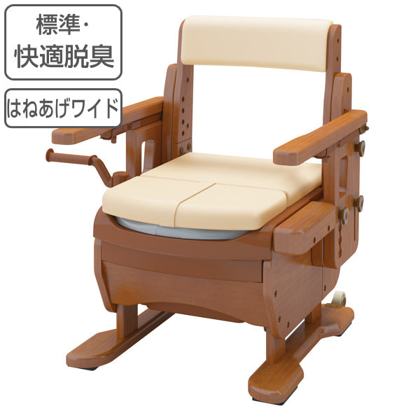 ポータブルトイレ 標準便座 快適脱臭 家具調セレクトR はねあげワイド ひじ掛けタイプ 介護用 日本製