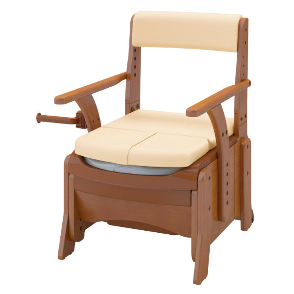 ポータブルトイレ コンパクト 暖房便座 快適脱臭 キャスター付 家具調セレクトR ノーマル ひじ掛けタイプ 介護用 日本製