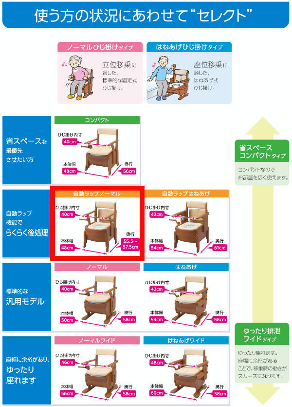 家具調トイレ「セレクトR」シリーズは、さまざまな住環境・症状・体格、そして処理方法にあわせてお選びいただけるポータブルトイレです。