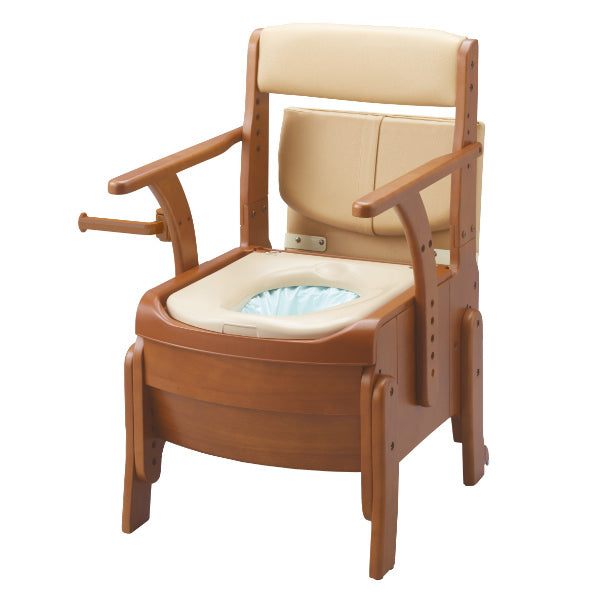 ポータブルトイレ コンパクト ソフト便座 自動ラップ キャスター付 家具調セレクトR ノーマル ひじ掛けタイプ 介護用 日本製
