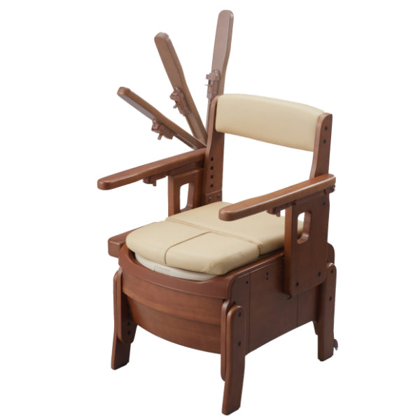 ポータブルトイレ コンパクト 標準便座 自動ラップ キャスター付 家具調セレクトR はねあげ ひじ掛けタイプ 介護用 日本製