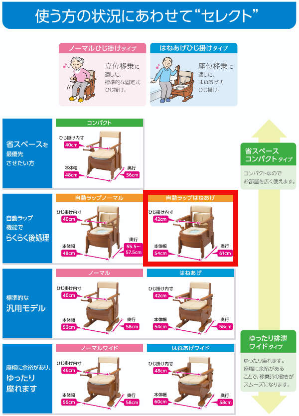 家具調トイレ「セレクトR」シリーズは、さまざまな住環境・症状・体格、そして処理方法にあわせてお選びいただけるポータブルトイレです。