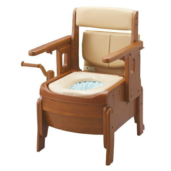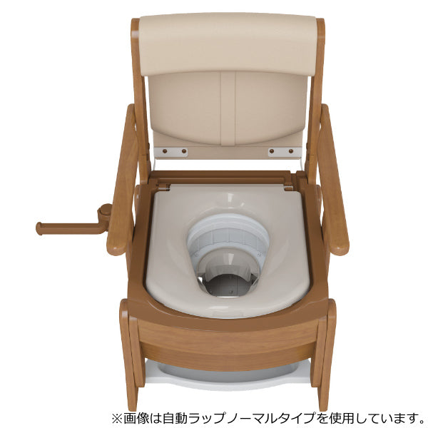 ポータブルトイレ コンパクト ソフト便座 自動ラップ キャスター付 家具調セレクトR はねあげ ひじ掛けタイプ 介護用 日本製