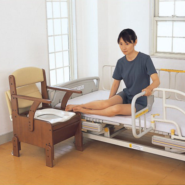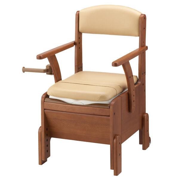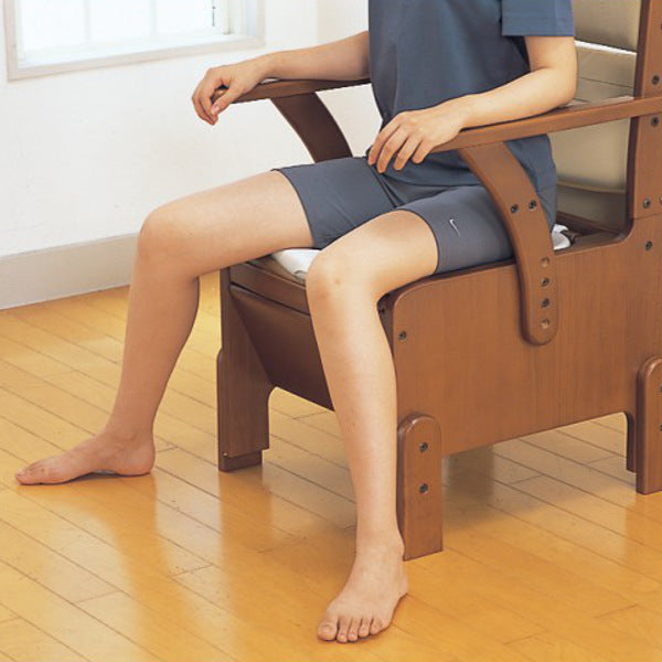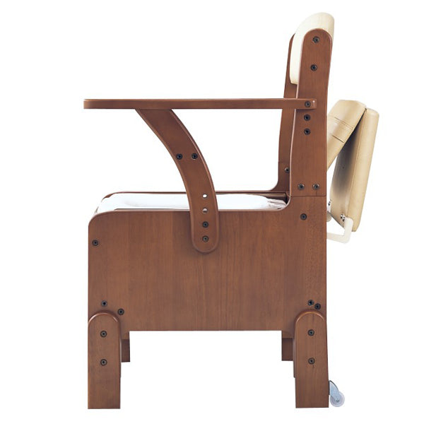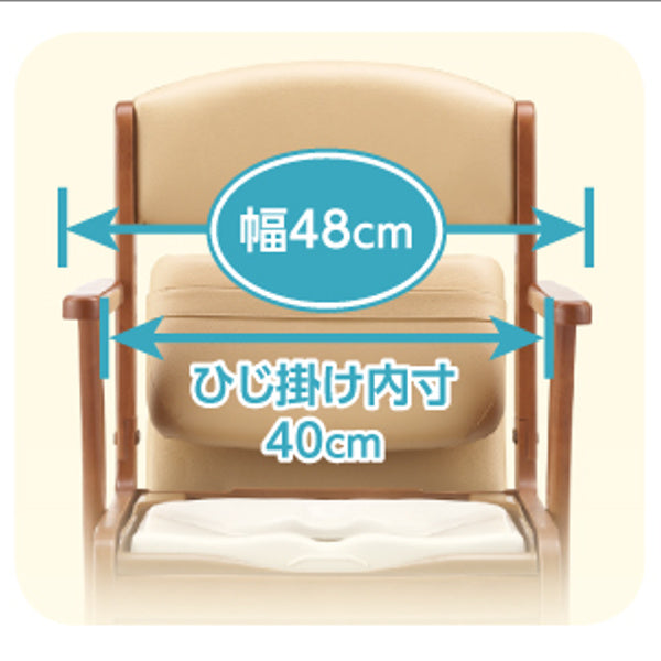 | 材質 | 構成部材:天然木(ラバーウッド) 表面加工:ウレタン樹脂塗装 座面、背もたれクッション:ウレタンフォーム、合成皮革 汚水受け付受け板、バケツ:PP 便座:PP |