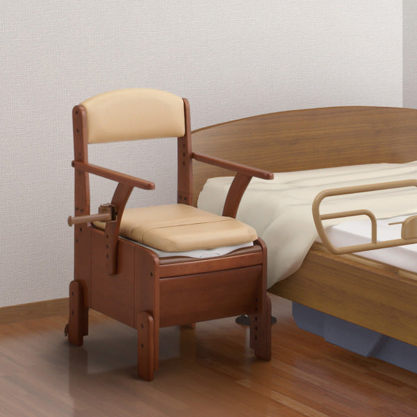 お部屋にトイレを設置したいけど、なるべく場所を取らず、コンパクトなポータブルトイレをお探しの方におすすめです。インテリアに馴染む家具調デザインです。