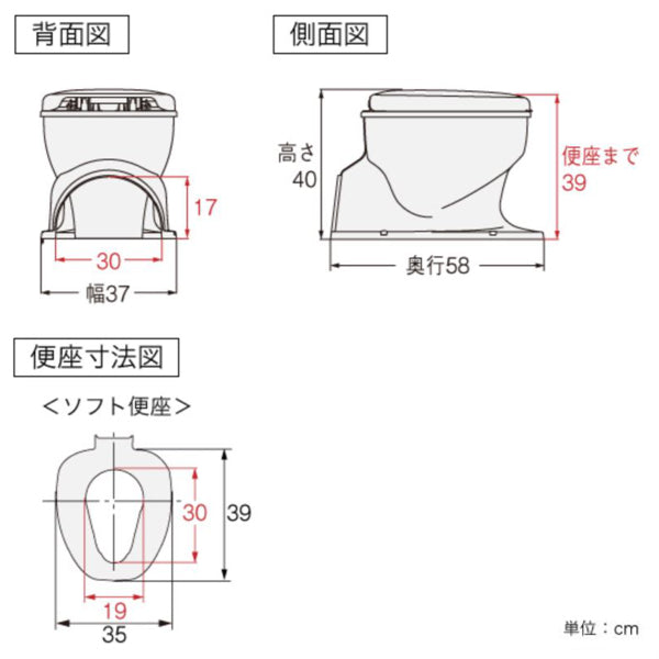 | サイズ | 約 幅37×奥行58×高さ40(cm) (便座までの高さ:39cm) |