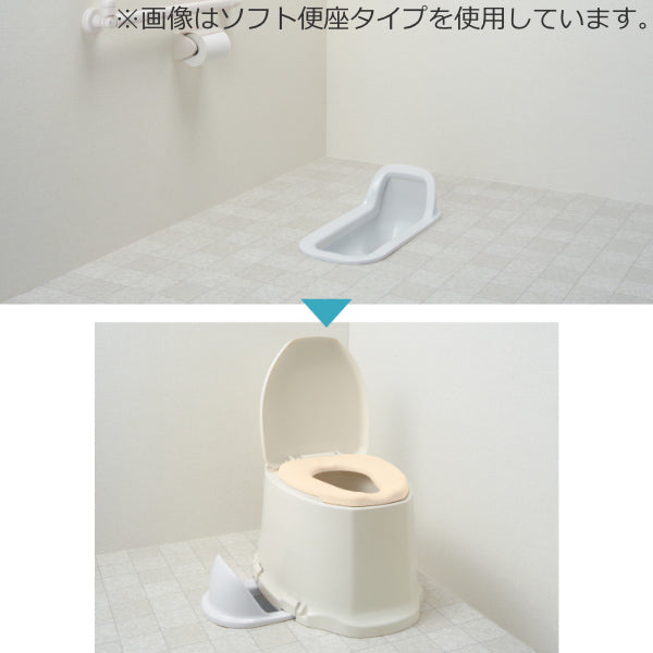工事不要で、段差のない和式トイレを洋式トイレとして使用できる簡易設置型洋式トイレです。家のトイレまでの移動は可能でも、和式トイレにかがむには足腰や膝が不安な方にピッタリです。