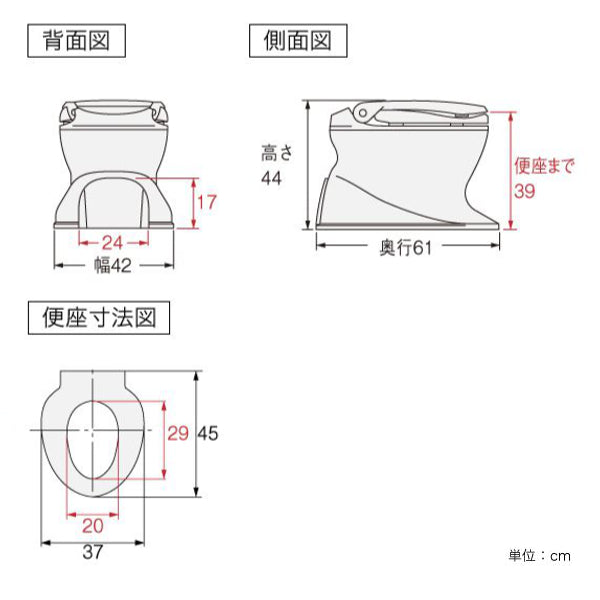 | サイズ | 約 幅42×奥行61×高さ44(cm) (便座までの高さ:39cm) |