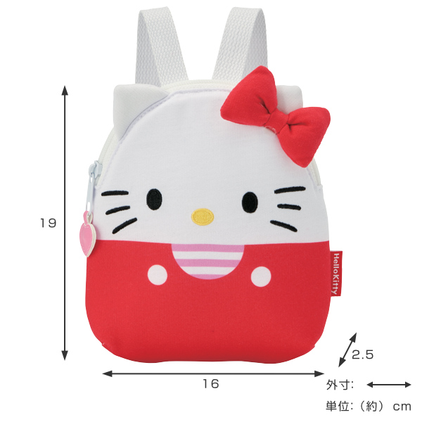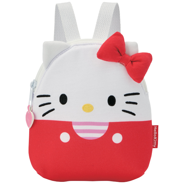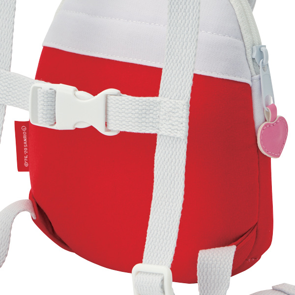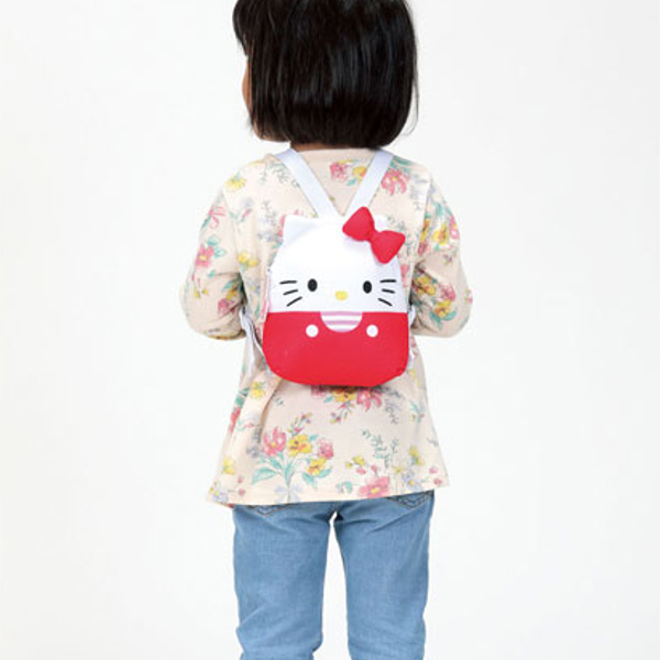 背負うとキティちゃんとお散歩しているような気分になれるお子様用のリュックです。メインポケットには大好きなお菓子やおもちゃを、背面ポケットには保冷剤やカイロを入れれば、いつものお散歩がより快適で楽しい時間になります。後ろ姿の可愛さはもちろん、お子様もお気に入りのリュックを背負えばぐんぐん歩いてくれそうです。
