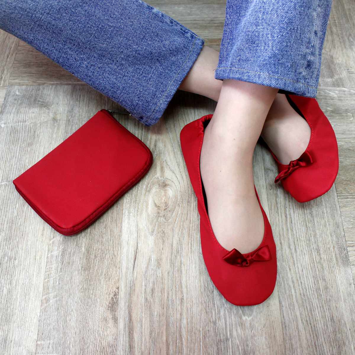 丸いつま先にワンポイントのリボンが女性らしい上品なデザインです。カジュアルにもフォーマルにもマッチし、旅行や学校行事、職場の室内履きなど様々なシーンで活躍します。
