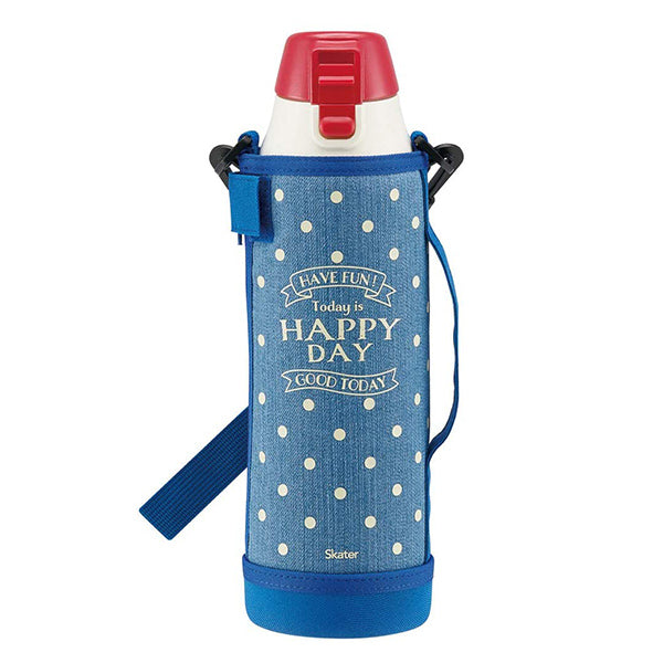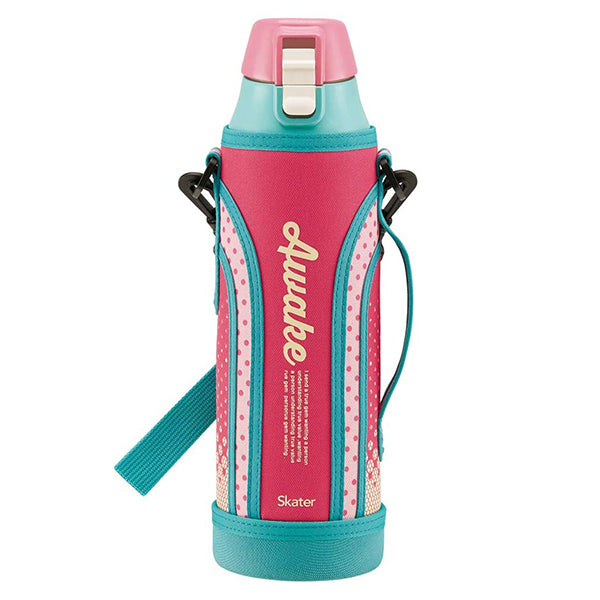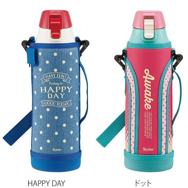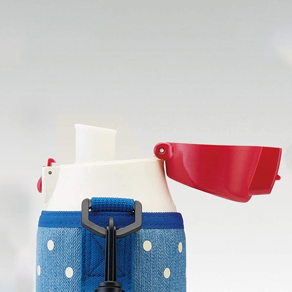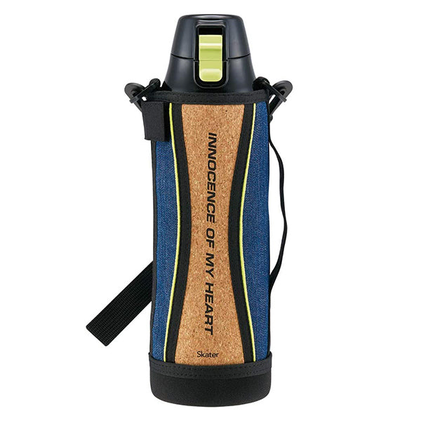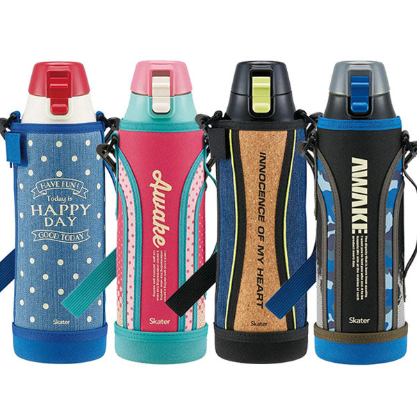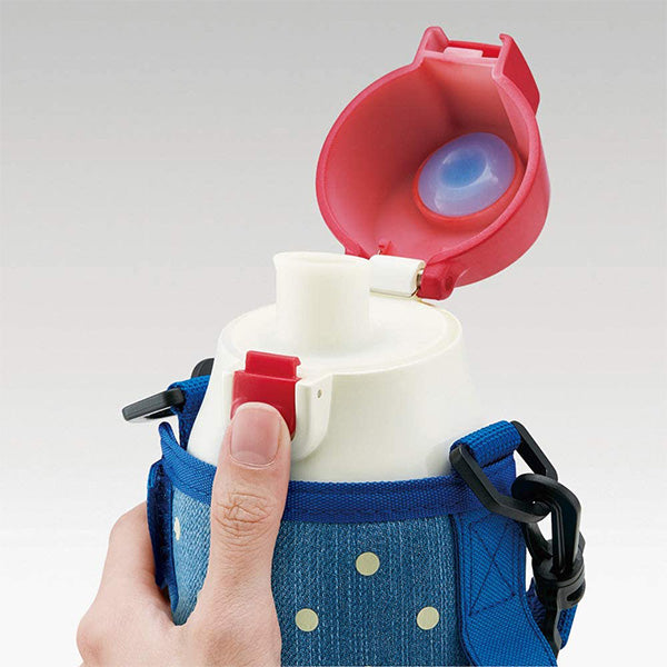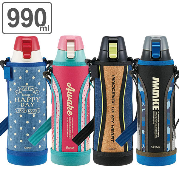 ワンタッチで開閉が出来る直飲みタイプの水筒です。たっぷり飲める容量990mlです。保冷専用で真空二層構造により、保冷効果が長持ちします。ボトルカバーには肩から掛けられるショルダーベルト付きで持ち運びに便利です。ファスナー部分には引っ掛かりを防ぐファスナーカバーが付いています。