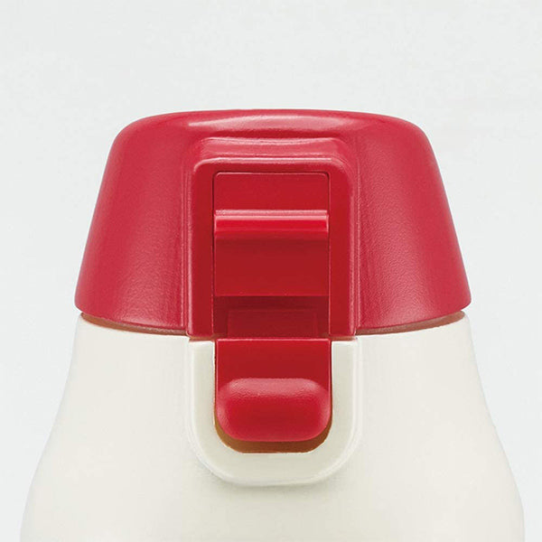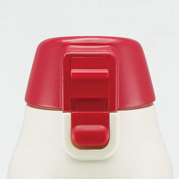 水筒の蓋はボタンを押すだけで開けることができるワンタッチ式です。小さなお子様でも簡単に開けられます。