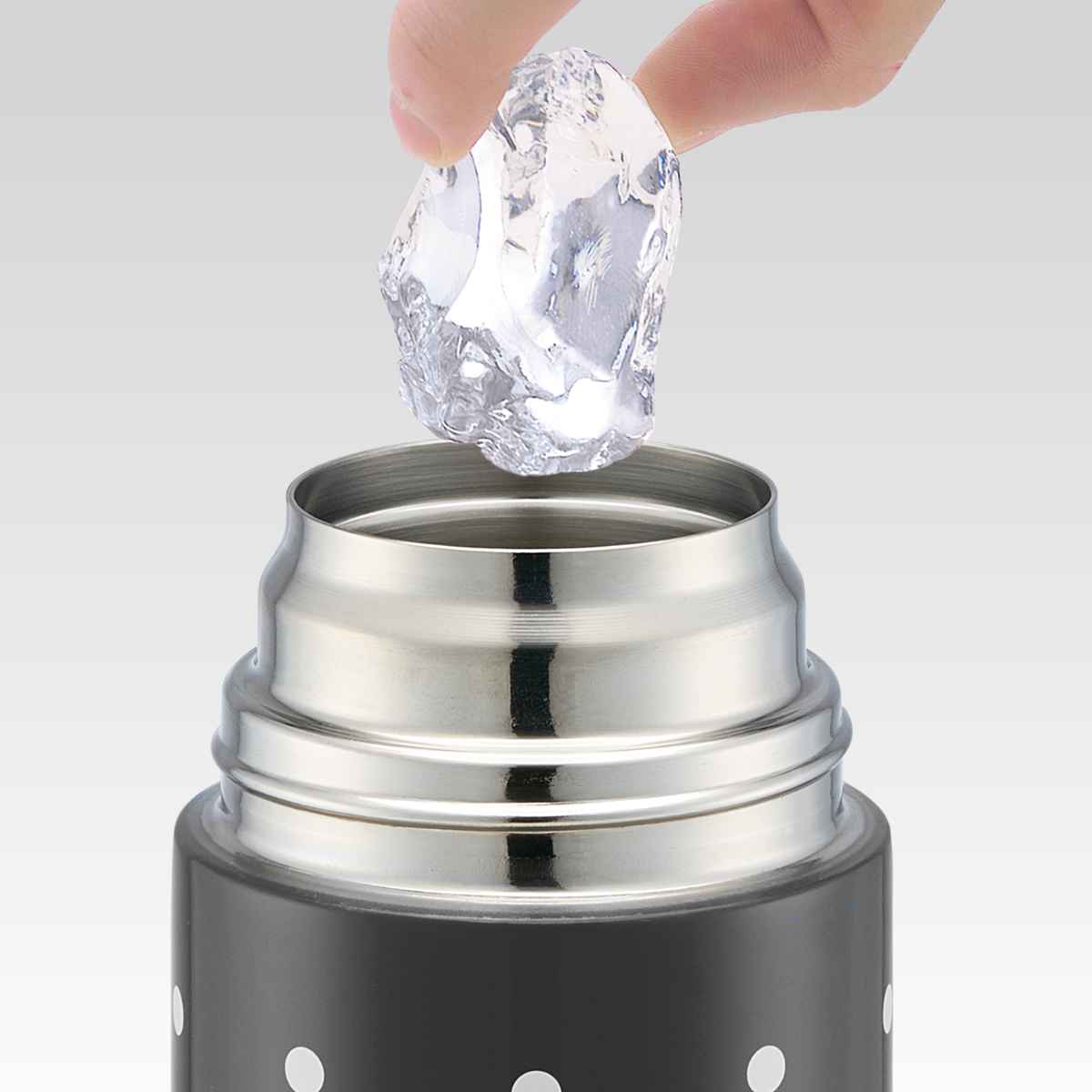 水筒の口は広口なので大きな氷も入れやすくなっています。また洗う時もしっかり洗えて衛生的です。