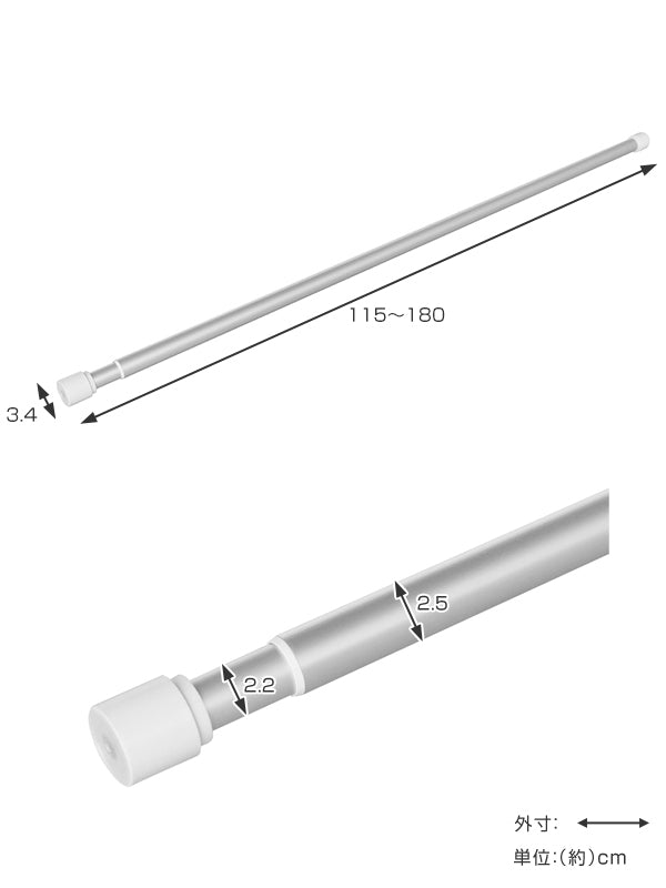 突っ張り棒 115cm~180cm アルミ軽量突ぱりポール 洗濯 ハンガー 物干し竿