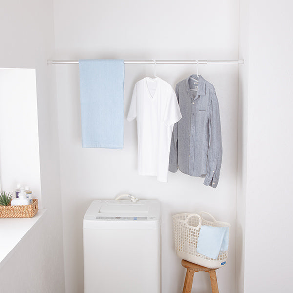 空間をスッキリ 洗濯機の上などのデッドスペースに突っ張り棒を付けることで、空間を有効活用することが出来ます。 |