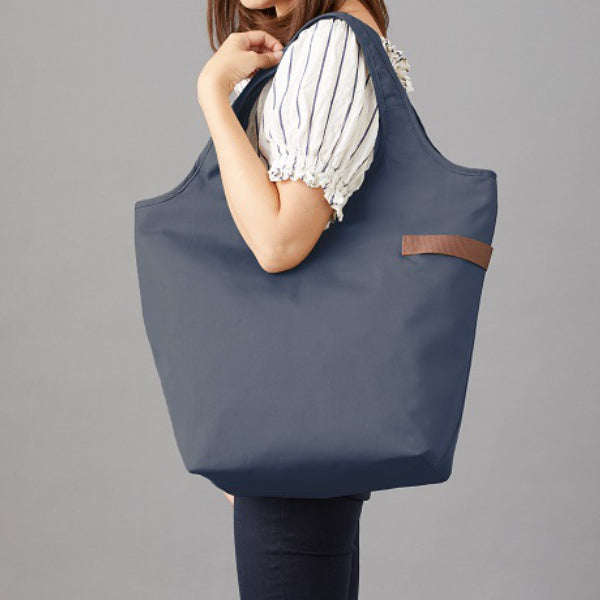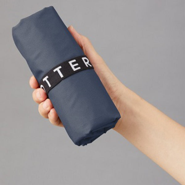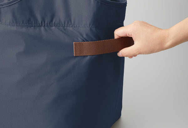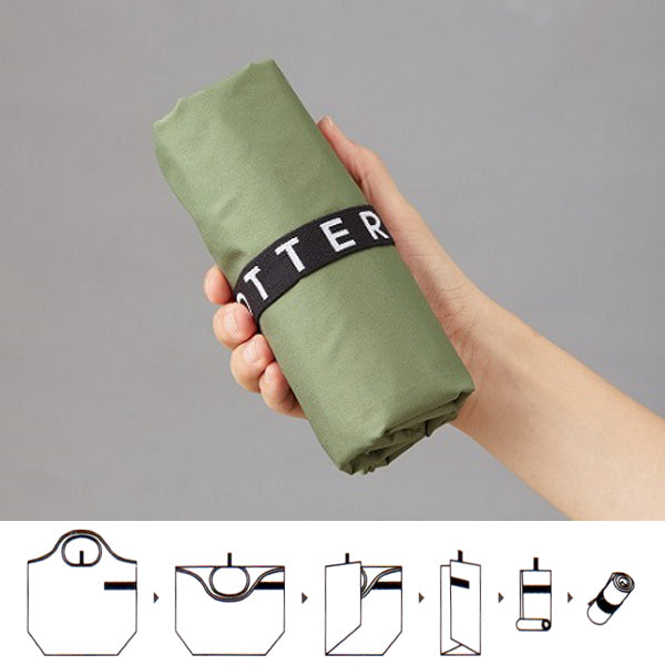畳んで付属のゴムバンドで留めれば、カバンや車の収納内に入れやすくなります。ゴムバンドはバッグの口部分に縫い付けられているので、なくしたり忘れたりする心配もありません。