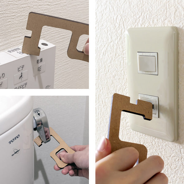 トイレの電源やレバーはもちろん、お部屋のスイッチを押すことにもご使用いただけます。エレベーター内のボタン、ドアハンドル、引き出しハンドル、公共設備など、さまざまな環境での使用に適しています。