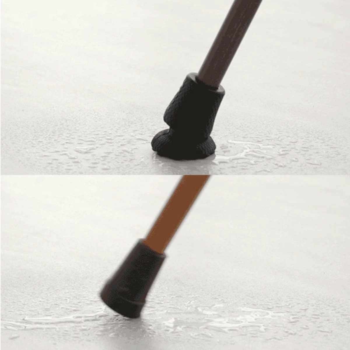 濡れた地面でも密着しやすい構造のため、一般的な先ゴム(下の画像)よりも滑りにくく、安全に歩行できます。