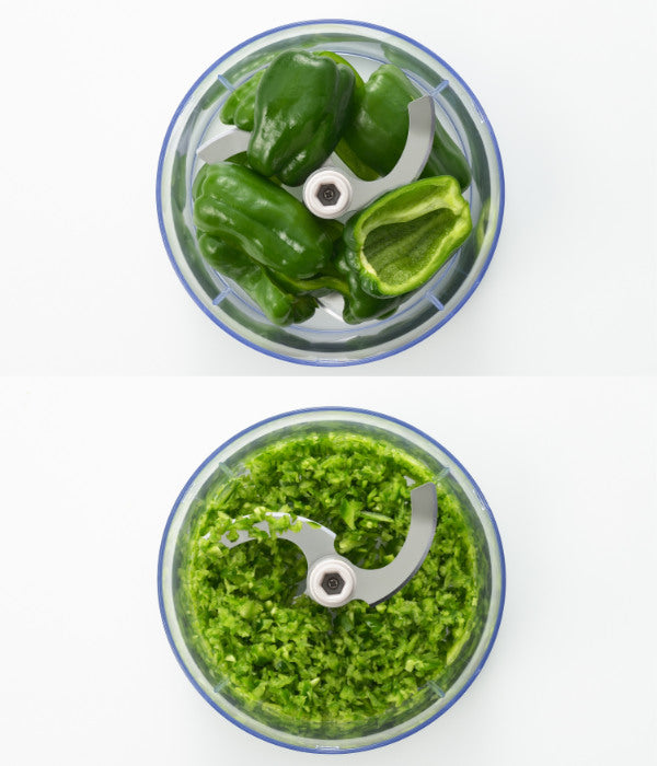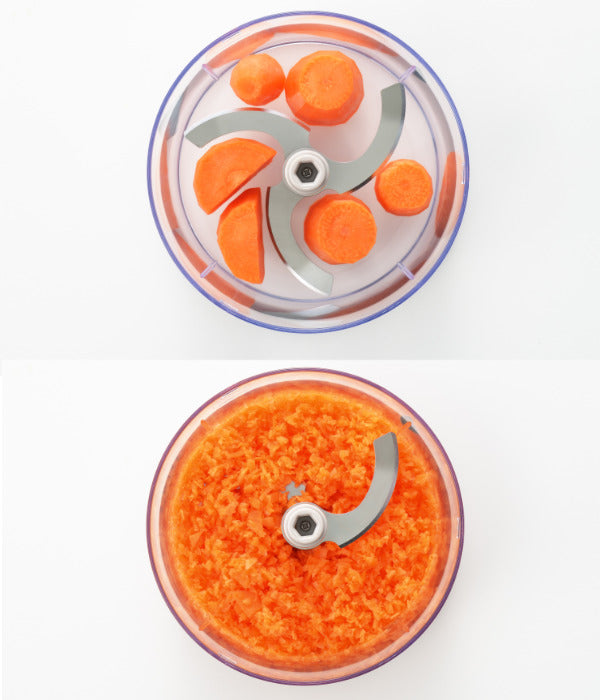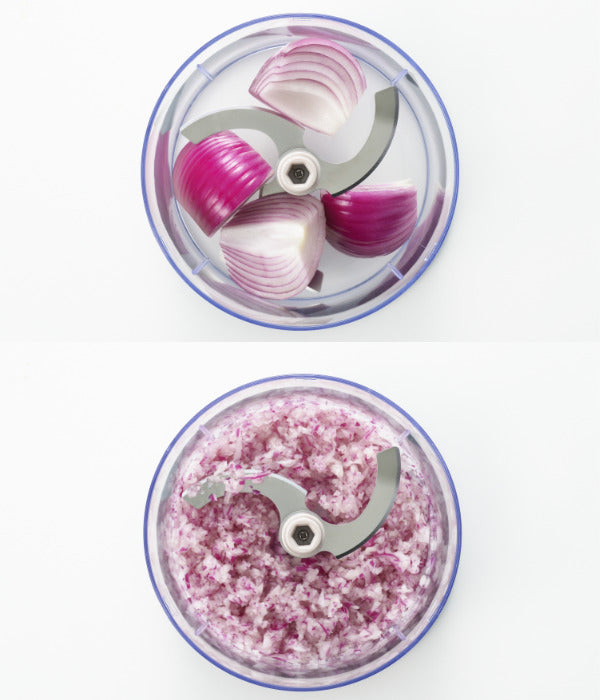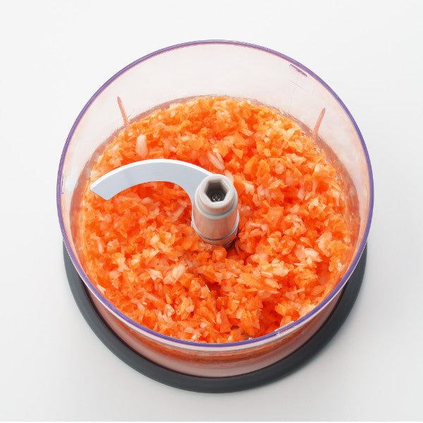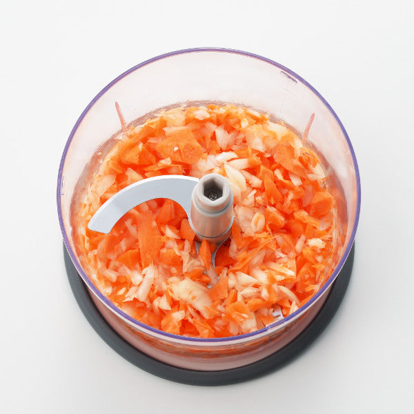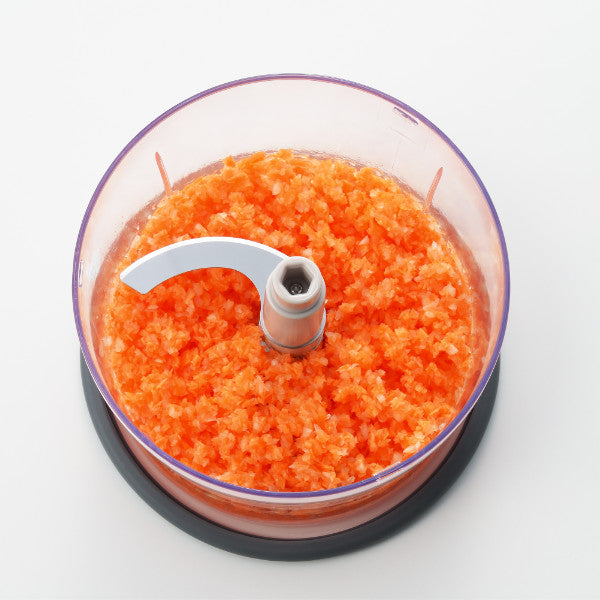 みじん切りは、プッシュ回数で粗みじんから細かいみじん切りまで調整が可能です。料理に合わせて使い分けが出来ます。