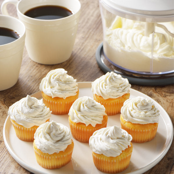 泡立て器も付属しているので、生クリームなどのお菓子作りにも役立ちます。上から押すだけで出来るので簡単に出来ます。