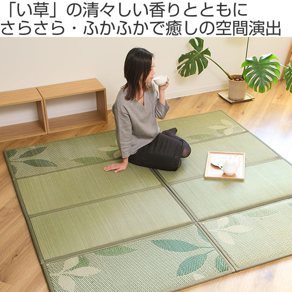| 材質 | 表地:い草100% 中材:発泡ポリエチレン 裏地:不識布(滑り止め加工付き) 面テープ:ポリエステル |