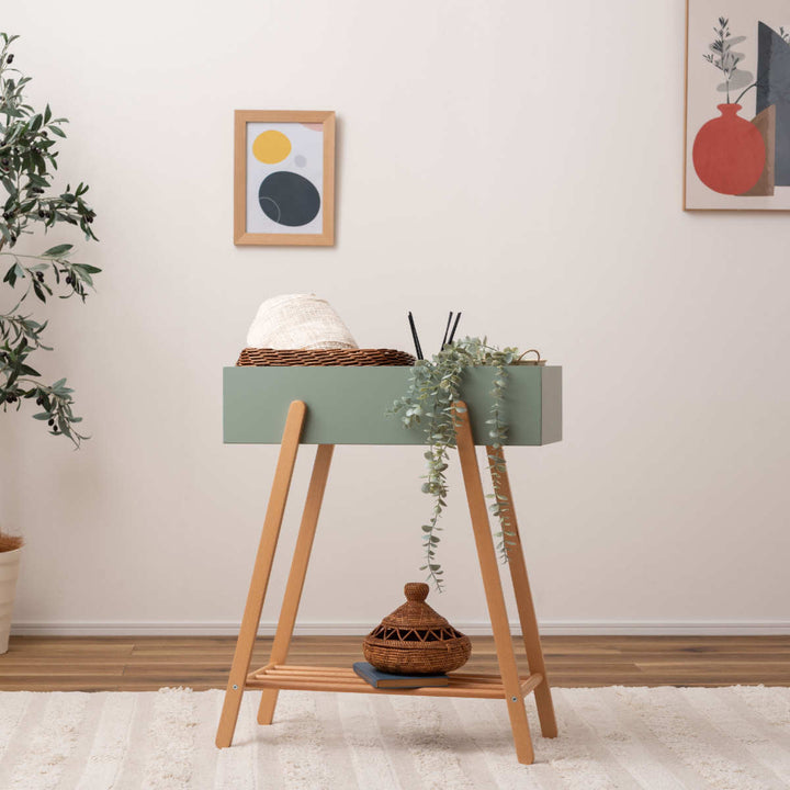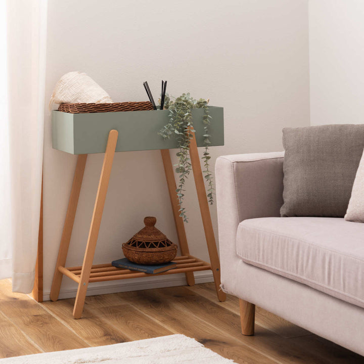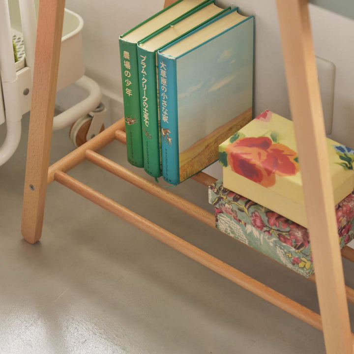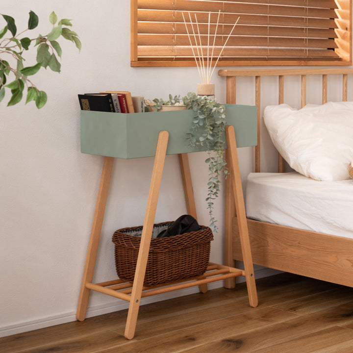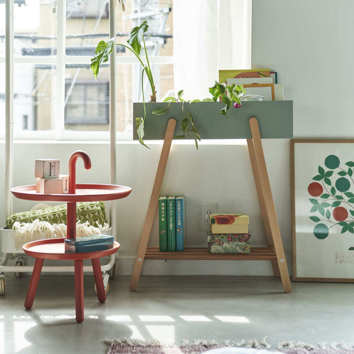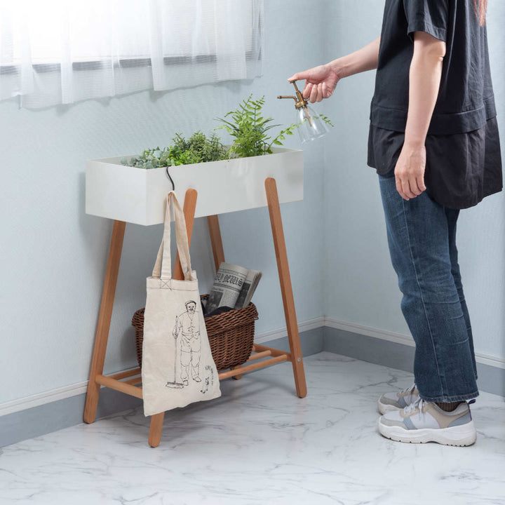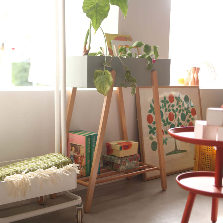フレームには天然木ビーチ材を使用しています。木目が細かく繊細な雰囲気の天然木なので、愛らしく上品な仕上がりです。プランタースタンドとしてだけでなく、室内では小物収納としても役立ちます。リビング、キッチン、寝室などの様々なシーンで活躍します。