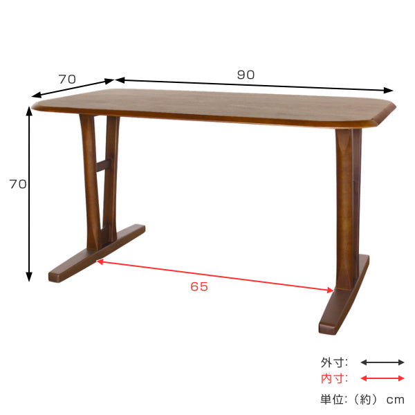 ダイニングテーブル幅90cm2本脚天然木アジャスター付