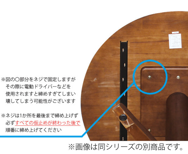 ※図の○部分をネジで固定しますが、その際に電動ドライバーなどを使用されますと、締めすぎてしまい壊してしまう可能性がございます。