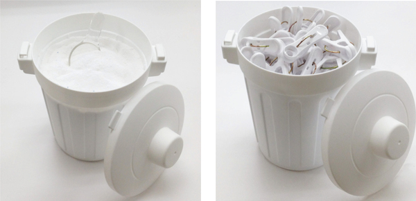 粉末洗剤の詰め替えや、洗濯バサミなどの小物を収納できるので便利です。洗濯機回りだけでなく、様々な場所でお使いいただけます。