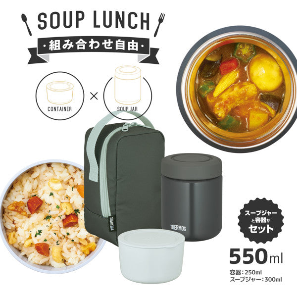 ●容量300mlの食べきりサイズのスープジャーに容量250mlの容器、断熱構造の専用ポーチがセットになったスープランチセットです。