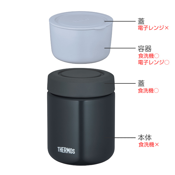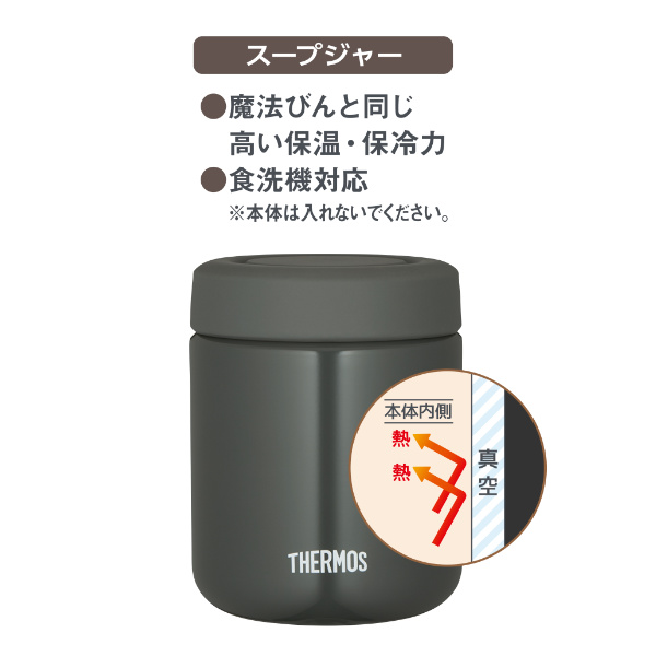 本体は広口なので食べやすく、洗いやすい構造となっています。また、真空断熱構造でステンレス製魔法びんと同じ高い保温・保冷力があるのでおいしい温度をキープすることができます。